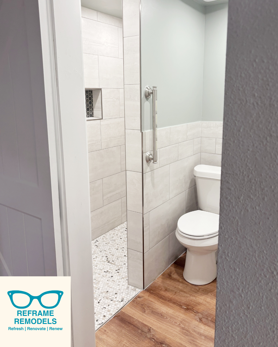 Her father, who lives with dementia, was moving from Arizona to Colorado to live with her. The basement would become his primary space; and the bathroom needed serious attention before he arrived. She posted in a Facebook support group for adults caring for aging parents, asking for help making her home safe and accessible. Multiple members recommended Reframe Remodels. (Thank you for that!)
